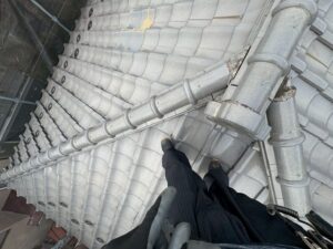 実際に屋根を調査したところ、防水シートの破れや桟木の腐食が確認され、さらに瓦の欠けも見つかりました。