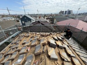 まずは既存の瓦を撤去し、劣化していた下地部分を補修・交換していきます。