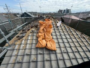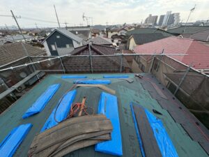 まずは既存の瓦を撤去し、劣化していた下地部分を補修・交換していきます。